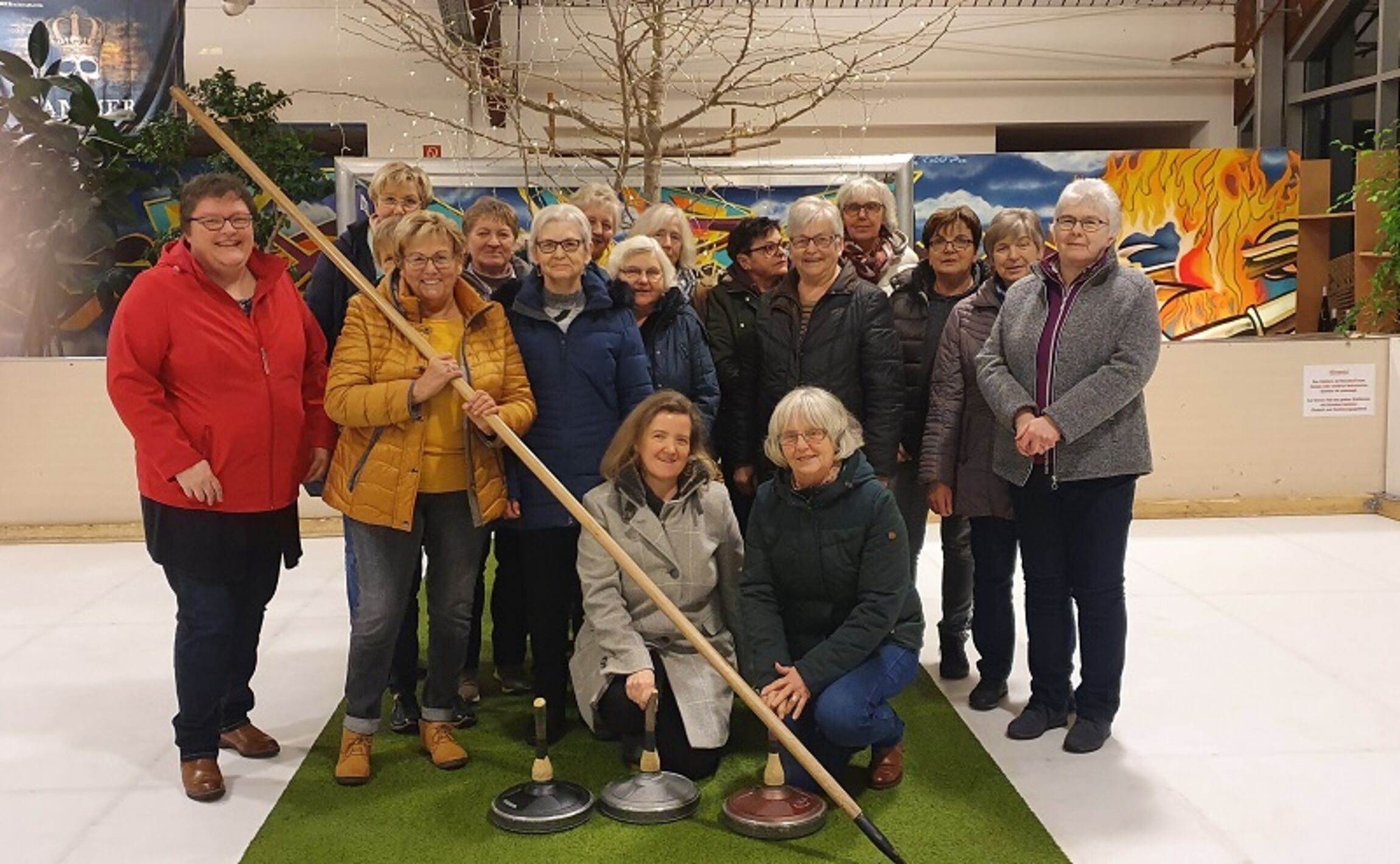 Bild zeigt die Gruppe beim Eisstockschiessen im Januar 2020
