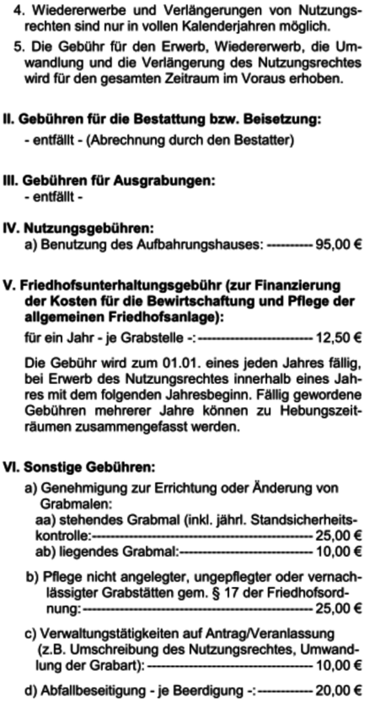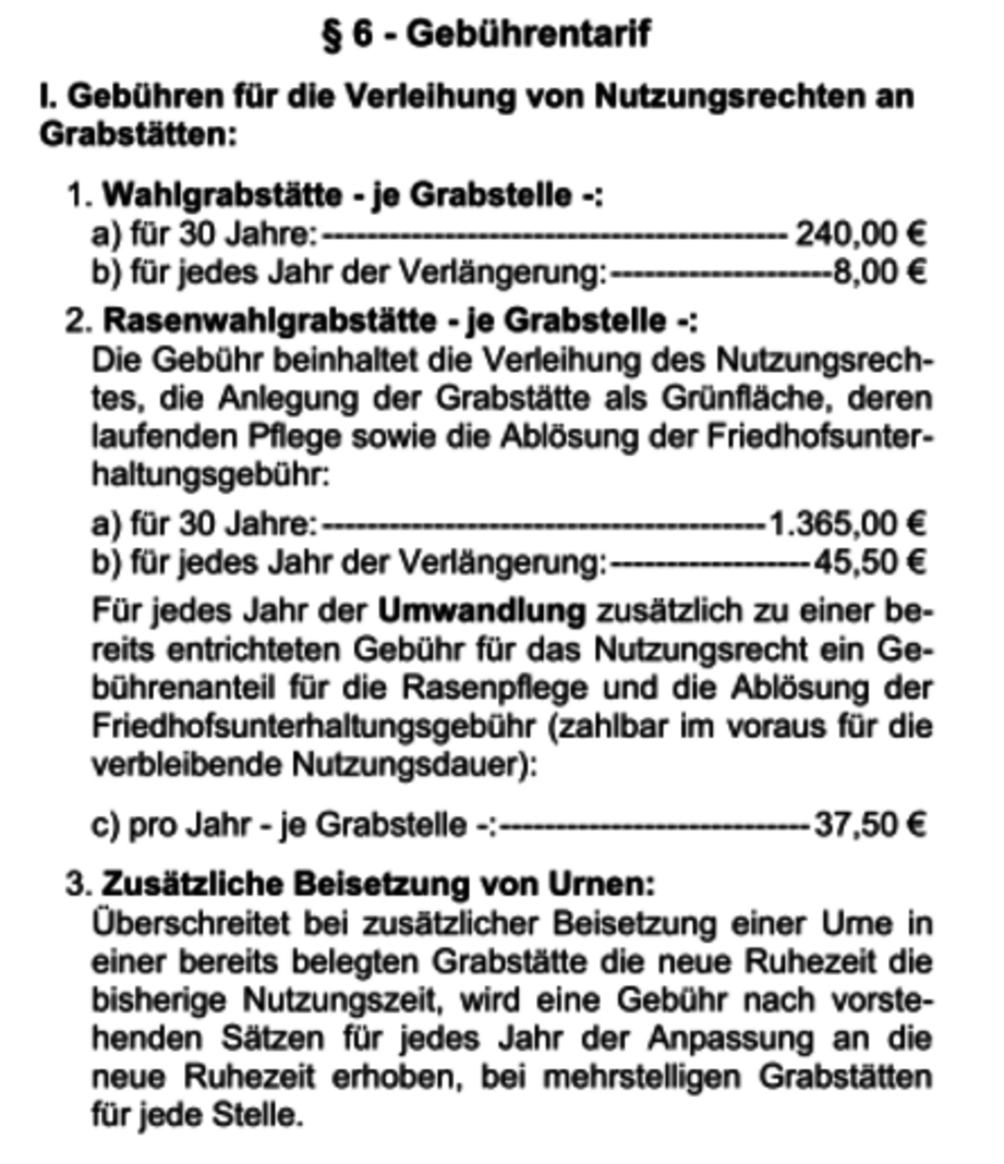 In den letzten Jahren wurde leider versäumt, die Friedhofsgebühr nach und nach anzupassen.